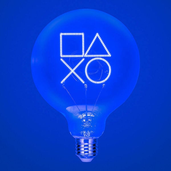 Geef je kamer een gaming glow met deze PlayStation icoon LED-lamp. Het filament in de vorm van het logo geeft blauw licht en past in een E27 fitting.